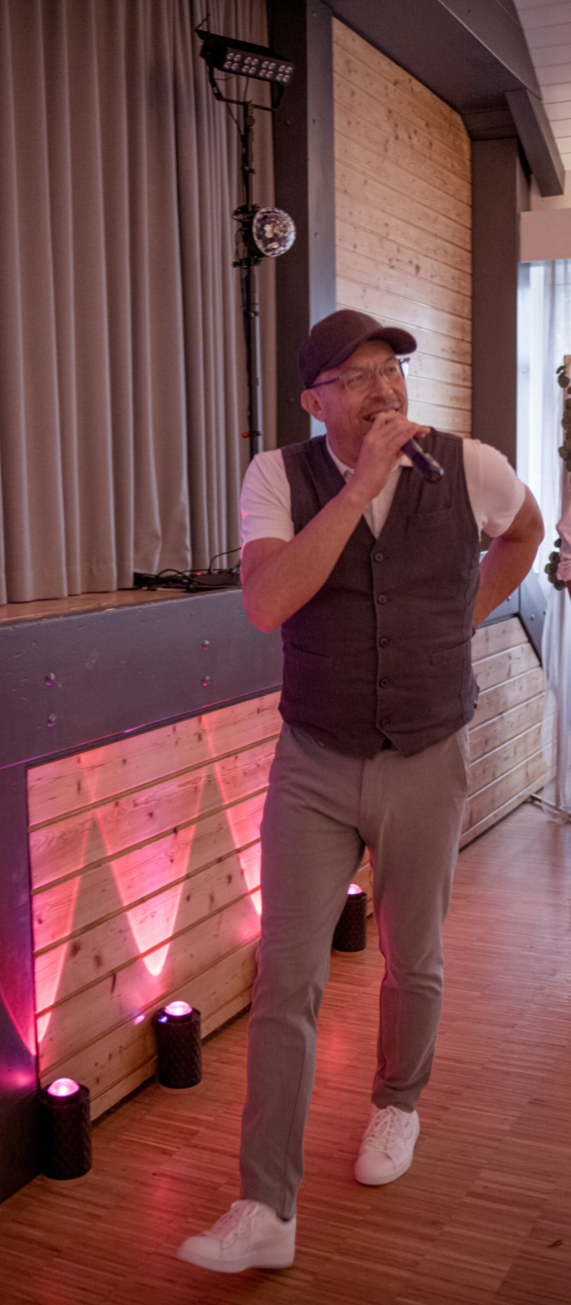 DJ Rico Cinsano als Moderator bei einem Hochzeitsspiel.